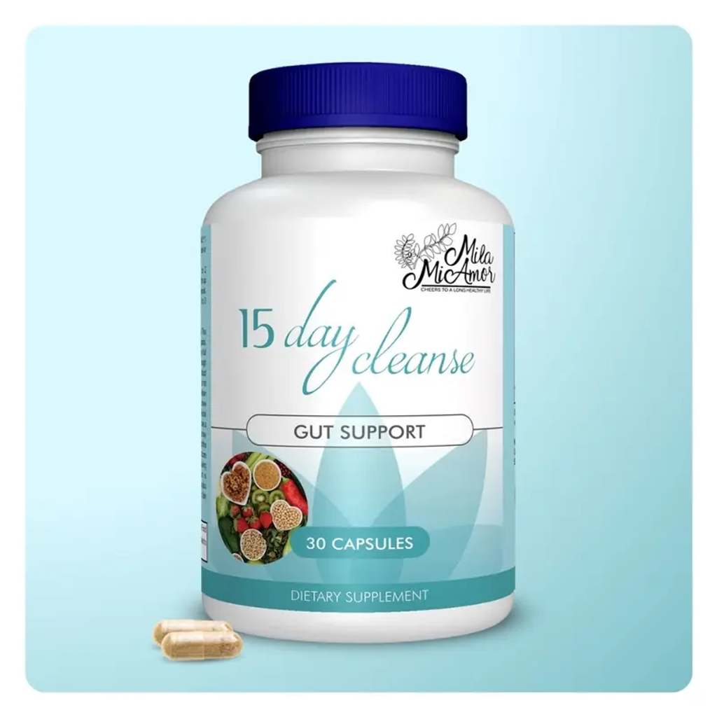 The 15 Day Cleanse is formulated to promote gut health and may relieve discomfort, leaving you feeling lighter and energized from within.